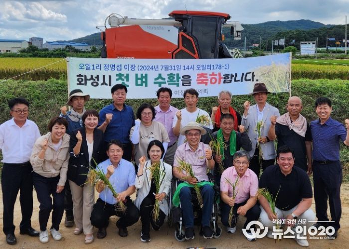 (뉴스인020 = 김성길 기자) 화성시가 올해 첫 벼 베기 행사를 7월 31일 정남면 오일리 뜰에서 진행했다고 밝혔다.