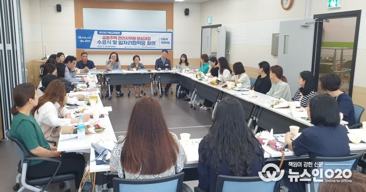 (뉴스인020 = 이한영 기자) 광명시 광명여성새로일하기센터는 지난 30일 직업교육훈련 ‘공동주택 관리사무원 양성과정’ 수료식을 개최하고 수료생과 대한주택관리사협회 대표, 실무자가 함께 참석해 일자리 협력망 회의를 열었다.