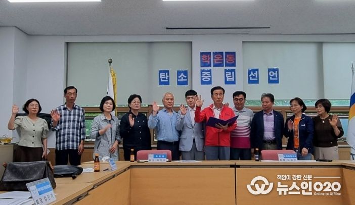 (뉴스인020 = 이한영 기자) 광명시 학온동 단체장협의회는 지난 2일 동 행정복지센터 1층 주민회의실에서 탄소중립도시 실현을 위한 ‘학온동 탄소중립 실천 선언식’을 개최했다.