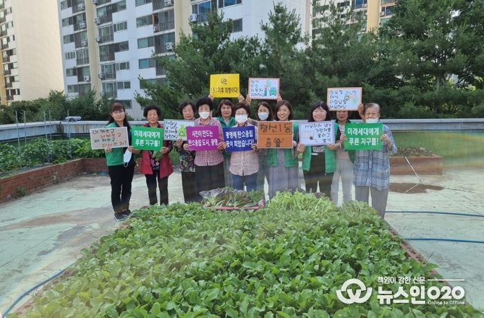(뉴스인020 = 이한영 기자) 광명시 철산1동 새마을부녀회는 지난 5일 동 행정복지센터 옥상에서 탄소중립 캠페인을 실시했다.