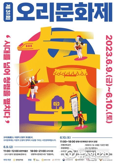 (뉴스인020 = 이한영 기자) 광명시 대표 시민문화축제인 오리문화제가 ‘시대를 넘어 청렴을 펼치다’라는 부제로 6월 9일, 10일 이틀 동안 충현박물관과 광명시민체육관에서 열린다.