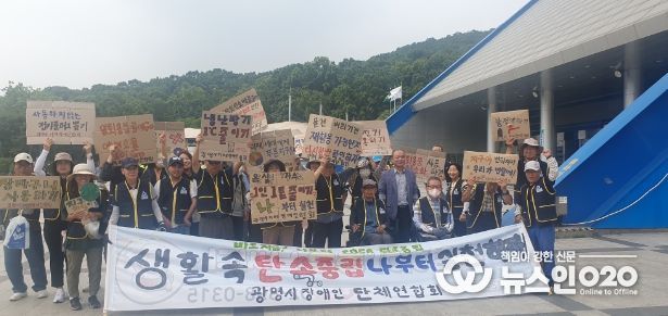 (뉴스인020 = 이한영 기자) 광명시 장애인단체연합회(회장 최강식)는 15일 광명시민체육관 대리석광장에서 회원 200여 명이 참석한 가운데 장애인과 비장애인이 함께 지속 가능한 광명을 만들기 위한 ‘2050 탄소중립 실천 선언식’을 개최했다.
