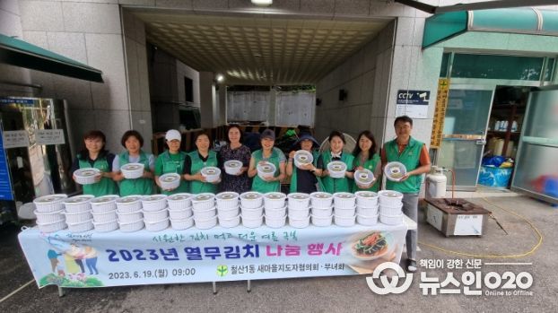 (뉴스인020 = 이한영 기자) 광명시 철산1동 새마을부녀회는 지난 19일 ‘2023년 철산1동 새마을 열무김치 나눔 행사’를 진행했다.