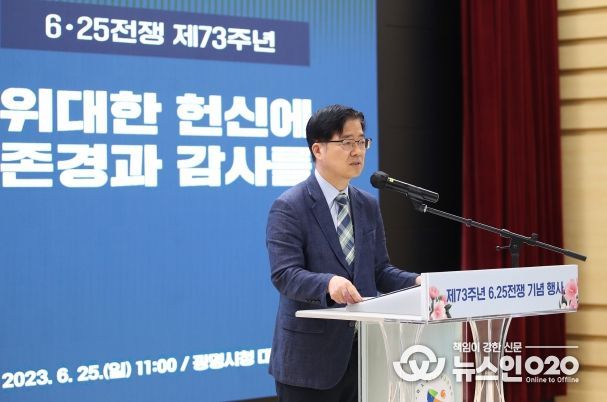 (뉴스인020 = 이한영 기자) 광명시는 6.25 전쟁의 호국영령과 참전용사들의 숭고한 희생정신을 기리기 위한 제73주년 기념행사를 25일 시청 대회의실에서 국가유공자 등 100여 명이 참석한 가운데 개최했다.