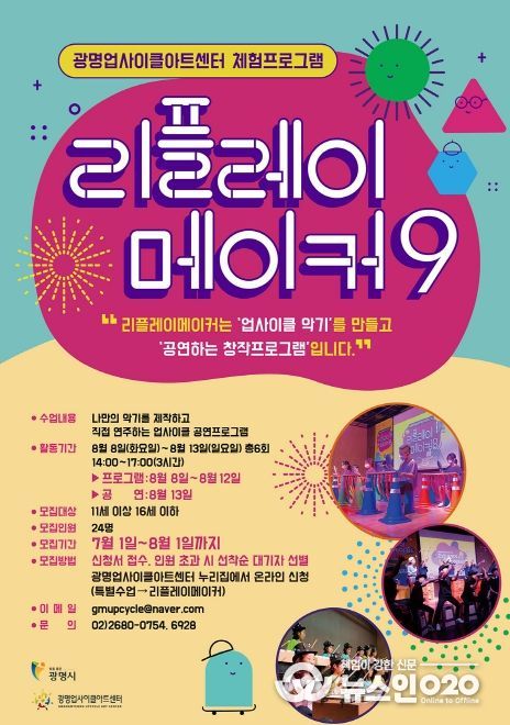 (뉴스인020 = 이한영 기자) 광명시 광명업사이클아트센터는 오는 8월 8일부터 13일까지 진행하는 창작공연프로그램 ‘리플레이메이커 시즌9’에 참가할 청소년들을 모집한다.