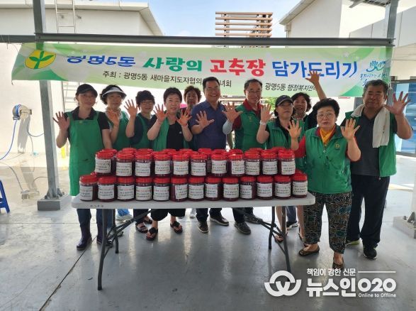 (뉴스인020 = 이한영 기자) 광명시 광명5동 새마을부녀회·지도자협의회는 지난 28일 공 행정복지센터에서 관내 어려운 어르신들을 돕기 위해 고추장 담기 행사를 진행했다.