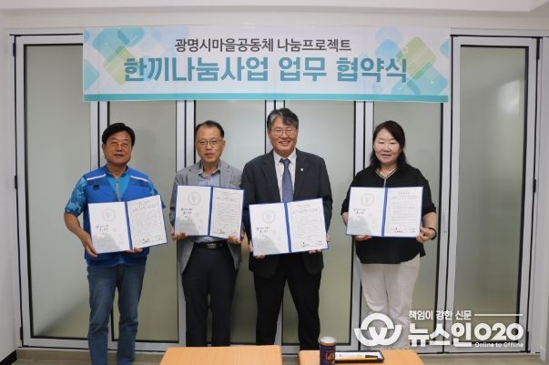 (뉴스인020 = 이한영 기자) 광명시 광명6동 지역사회보장협의체는 3일 지역교회인 동성서광교회(담임목사 황영환) 및 어울마루 지역아동센터(대표 이해순)와 어려운 이웃에게 쌀을 지원하기 위한 ‘한끼나눔사업 협약식’을 추진했다.