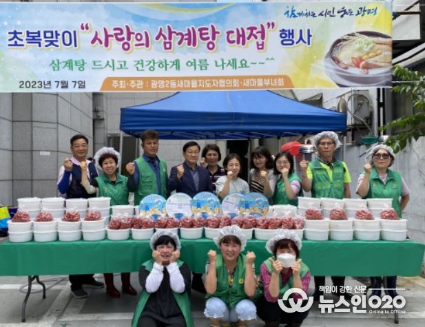 (뉴스인020 = 이한영 기자) 광명시 광명2동 새마을지도자협의회·부녀회는 초복을 앞두고 7일 동 행정복지센터에서 관내 독거 어르신 및 한부모 가정 80명에게 사랑의 삼계탕을 전달하며 건강한 여름나기를 기원했다.