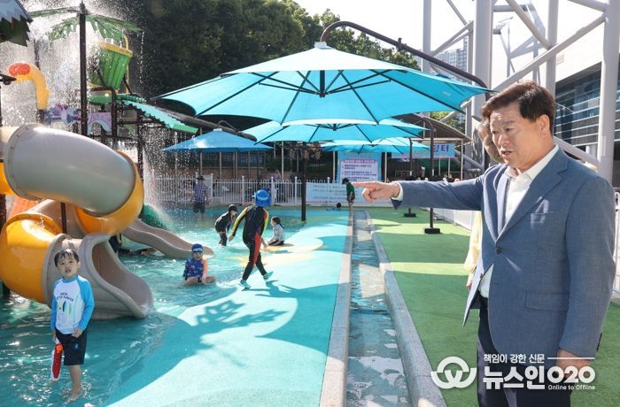 (뉴스인020 = 이한영 기자) 박승원 광명시장은 지난 7일 안양천 물놀이장과 광명시민체육관 물놀이장 등 관내 어린이 물놀이장 2개소를 방문해 안전과 운영상태 전반을 점검했다.