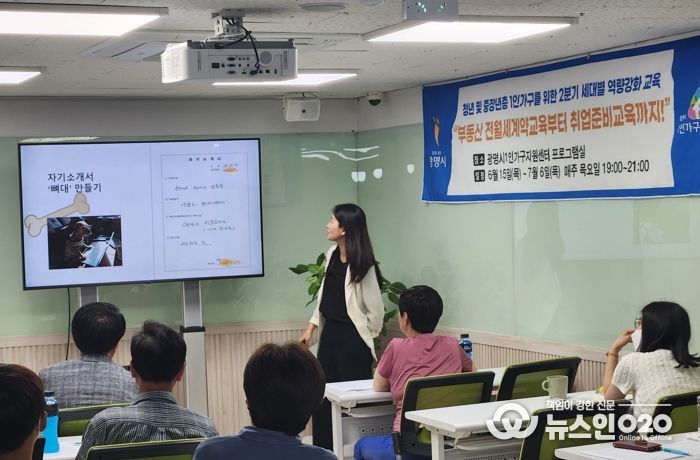 (뉴스인020 = 이한영 기자) 광명시 1인가구지원센터는 “부동산 전월세 계약부터 취업 교육까지”를 주제로 2023년 2분기 1인가구 세대별 역량강화 교육을 진행했다. 교육은 청․중장년 1인가구 15명이 참여한 가운데 지난 6월 15일부터 7월 6일까지 매주 목요일 총 4회에 걸쳐 진행됐다.