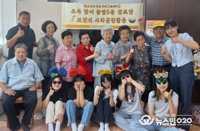 (뉴스인020 = 이한영 기자) 광명시청소년재단 해냄청소년활동센터의 청소년봉사동아리 [뽀빠이]는 초복을 맞아 지난 8일 광명5동 경로당을 위한 보양식으로 삼계탕을 만들어 나누는 사회공헌 활동을 펼쳤다.