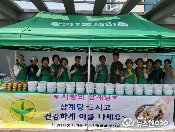 (뉴스인020 = 이한영 기자) 광명시 광명7동 새마을부녀회는 중복을 맞아 지난 20일 관내 홀몸 어르신 등 취약계층을 위한 삼계탕 나눔 행사를 진행했다.
