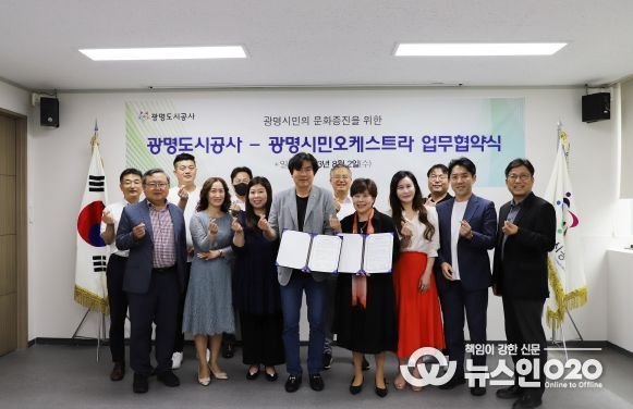 (뉴스인020 = 이한영 기자) 광명도시공사는 2일 광명시민오케스트라와 ‘광명시민의 문화증진 및 문화예술 활성화’를 위한 업무협약(MOU)을 체결했다고 밝혔다.