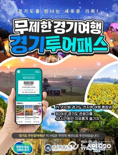 경기투어패스는 경기도 관광지 80곳을 분할하여 자유롭게 이용할 수 있는 통합권으로 네이버, 쿠팡, 티몬, 클룩 등 14개 판매처를 통하여 구매할 수 있으며, 첫 관광지 검표를 시작으로 48시간 내 자유롭게 도내 제휴 관광시설 이용이 가능하다.