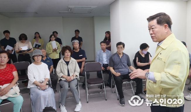 박 시장은 주민 공동이용시설과, 개별 세대, 주차장 등을 돌아보며 입주민들의 주거환경 전반을 꼼꼼히 살핀 후 입주민 등이 참석한 가운데 사업 현황에 대한 설명을 듣고 입주민들로부터 애로사항을 청취한 자리에서 이같이 밝혔다. 입주민들은 이 자리에서 관리비 부담을 줄여 줄 것과 복도식 아파트의 공동 이용 공간과 주차장 외벽 등 시설 개선 등을 건의했다.