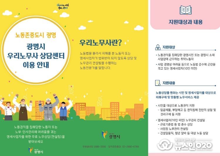 (뉴스인020 = 이한영 기자) 광명시에서 2019년 8월부터 운영 중인 우리 노무사 상담센터가 취약노동자와 영세사업주들에게 든든한 지원군이 되고 있다.
