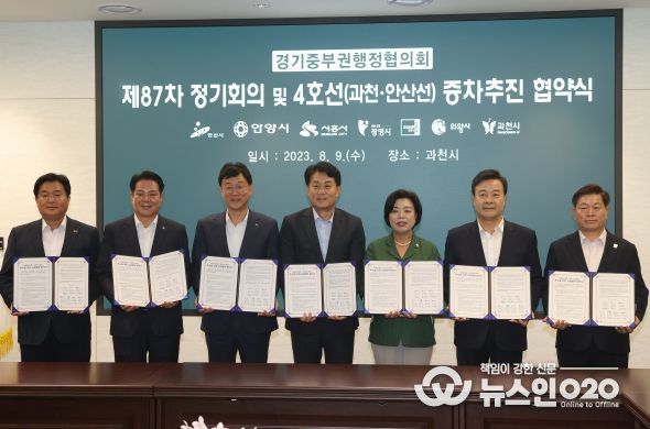 시는 9일 오전 과천시 디테크타워 미래홀에서 열린 경기중부권행정협의회에서 광명, 안산, 안양, 시흥, 군포, 의왕, 과천 등 7개 회원 도시 간 공동대응을 요청하는 철도사업에 적극 협력한다는 내용을 포함한 업무협약을 체결해 신천~하안~신림선 추진에 공동 대응을 요청할 수 있는 발판을 마련했다.