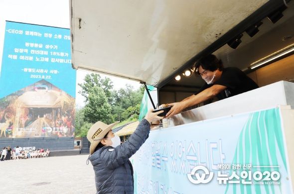 공사 사장이 직접 도시락과 간식, 음료 등 격려물품을 현장 근무자들에게 전달하며 무더운 여름 고생이 많았다는 격려와 건강 관리에 대한 당부의 말을 건넸다. 또한 광명동굴 내 사업장 곳곳을 둘러보며, 직원들과 근무환경이 어떤지, 애로사항이 어떤 것이 있는지 소통하는 시간을 가졌다.
