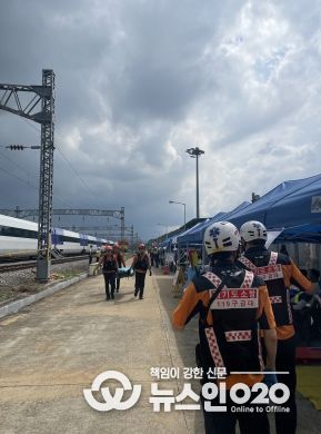 광명소방서는 22일 경부고속선 광명주박기지에서 시행된 한국철도공사 주관 유관기관 합동 고속철도 대형사고 실제훈련에 참여, 상황접수부터 초기대응, 긴급구조통제단운영 및 수습복구까지 기관별 역할에 맞게 임무를 수행했다고 전했다.