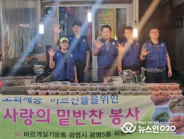 (뉴스인020 = 이한영 기자) 광명시 광명5동 바르게살기운동위원회는 22일 복지사각지대에 놓인 관내 취약계층 9가구에 밑반찬을 손수 만들어 전달했다.