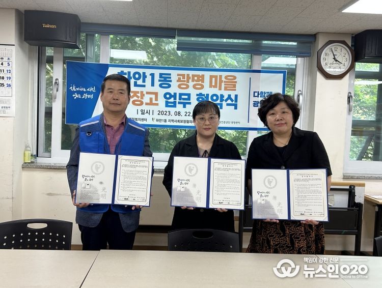 (뉴스인020 = 이한영 기자) 광명시 하안1동 행정복지센터와 하안1동 지역사회보장협의체는 지난 22일 소상공인시장진흥공단 광명센터와 하안1동 광명마을냉장고에 라면, 쌀 등 식료품을 정기후원하는 한끼 나눔협약을 체결했다.