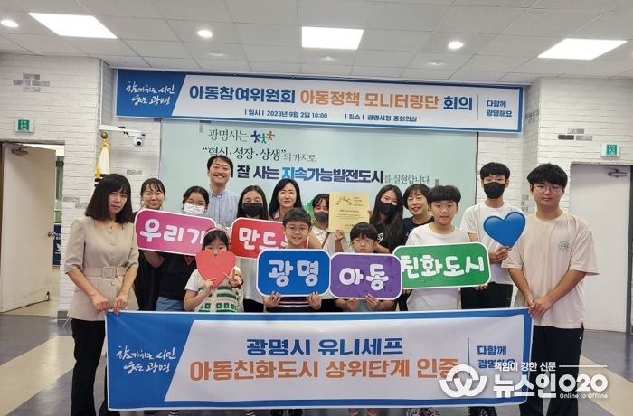 (뉴스인020 = 이한영 기자) 광명시는 '유니세프 아동친화도시' 상위단계 인증을 획득했다고 밝혔다.