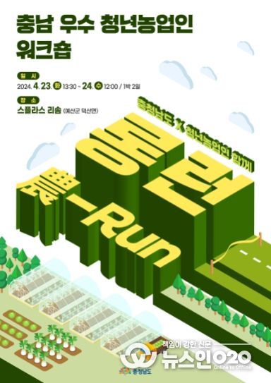 (뉴스인020 = 최정직 기자) 충남도 농업기술원은 오는 23∼24일 스플라스 리솜에서 도내 청년 농업인의 자긍심을 고취하고 ‘청년이 창농하기 좋은 충남’을 대내외 알리는 ‘충남 우수 청년 농업인 워크숍’을 개최한다고 19일 밝혔다.