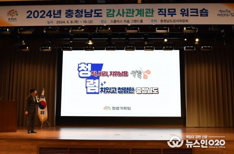 (뉴스인020 = 최정직 기자) 충남도는 9일 예산 스플라스 리솜에서 ‘2024년 충청남도 감사관계관 역량 강화 합동 워크숍’을 개최했다.