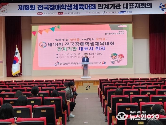 (뉴스인020 = 최정직 기자) 충남교육청은 10일 충남교육청 대강당에서 제18회 전국장애학생체육대회에 출전하는 충남 선수단 대표자 60여 명을 대상으로 대표자회의를 개최했다고 밝혔다.