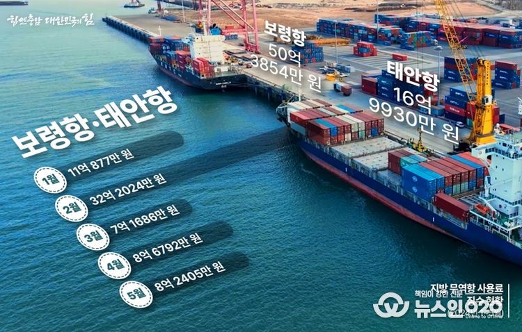 (뉴스인020 = 최정직 기자) 충남도가 지난 5개월 간 징수해 세입 처리한 지방관리 무역항 항만시설 사용료(지방 무역항 사용료)가 70억 원에 육박하는 것으로 나타났다.