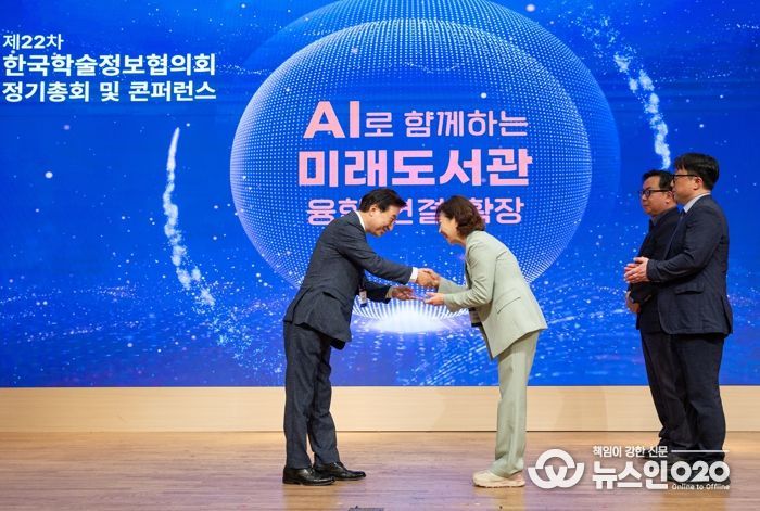 (뉴스인020 = 최정직 기자) 충남도서관은 최근 전북 부안군 소노벨 변산에서 열린 ‘제22차 한국학술정보협의회 정기총회 및 콘퍼런스 공로상 시상식’에서 국회의장상을 수상했다고 6일 밝혔다.