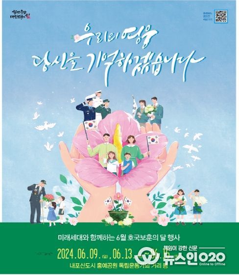 (뉴스인020 = 최정직 기자) 충남도는 6월 호국보훈의 달을 맞아 13일부터 15일까지 내포신도시 홍예공원 일원에서 ‘미래세대와 함께하는 보훈문화 체험행사’를 운영한다고 밝혔다.