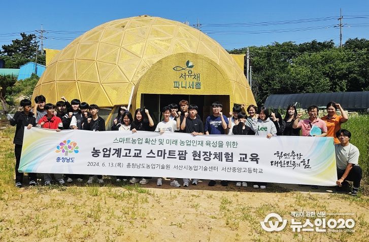 (뉴스인020 = 최정직 기자) 충남도 농업기술원은 13일 서산·태안 일원에서 서산중앙고 생태경관디자인과 학생 24명을 대상으로 농업계고교 스마트팜 현장 체험교육을 추진했다.