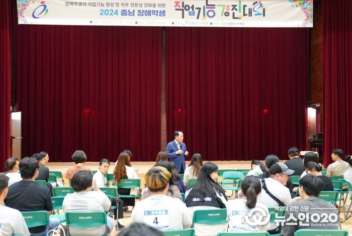(뉴스인020 = 최정직 기자) 충남교육청은 22일 논산 성광온누리학교에서 특수학교(급) 고등학교 발달장애 학생, 지도교사, 관계자 등 300여 명이 참석한 가운데 2024 충남 장애학생 직업기능경진대회를 개최했다.