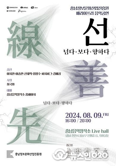 (뉴스인020 = 최정직 기자) 충청남도(도지사 김태흠)와 충남정보문화산업진흥원이 8월 9일 16시, 20시에 ‘넘다·보다·향하다’라는 주제로 배리어프리 음악공연 “선”을 충남음악창작소 Live Hall에서 개최한다.