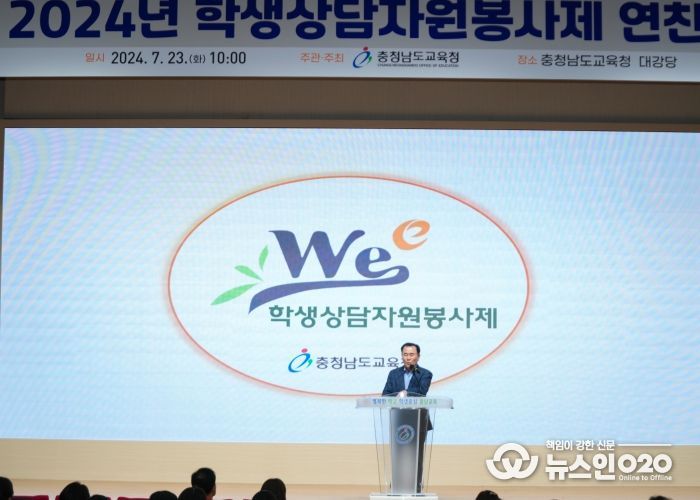 (뉴스인020 = 최정직 기자) 충남교육청은 7월 23일 충남교육청 대강당에서 150여 명의 충남학생상담자원봉사자들이 참석한 가운데 꿈·사랑·봉사 실천을 위한 ‘2024 학생상담자원봉사제 연찬회’를 개최했다.