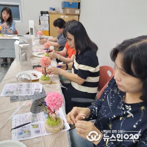 (뉴스인020 = 박용우 기자) 수원시가 25일 휴먼콜센터 내 교육장에서 상담사를 위한 힐링프로그램 ‘토피어리(식물 장식품) 무드등 만들기’를 진행했다.