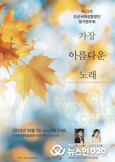 (뉴스인020 = 김성길 기자) 오산시가 오는 10월 1일 오산문화예술회관 대공연장에서 '제23회 오산시여성합창단 정기연주회'를 개최한다.
