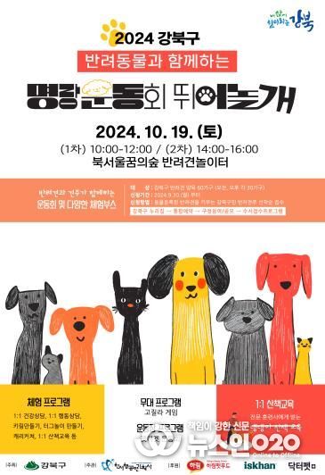 (뉴스인020 = 박용우 기자) 서울 강북구는 오는 10월 19일 북서울꿈의숲 반려견놀이터에서 오전(10시~12시)과 오후(14시~16시) 2회차에 걸쳐, 반려동물 명랑운동회 ‘뛰어놀개’를 개최한다고 밝혔다.
