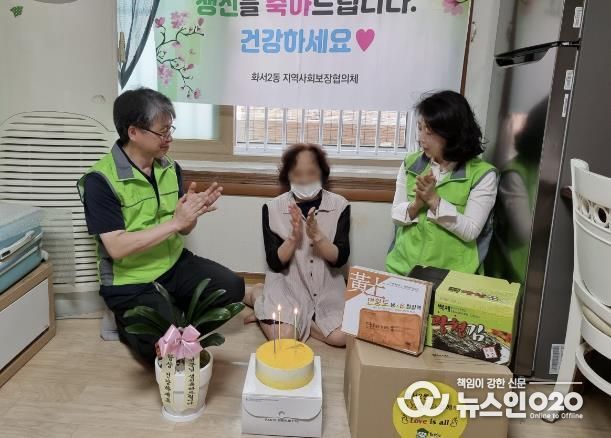 (뉴스인020 = 박용우 기자) 수원특례시 팔달구 화서2동은 지난 26일, 생신을 맞이하신 홀몸 어르신 댁을 방문해 생신잔치를 열었다.