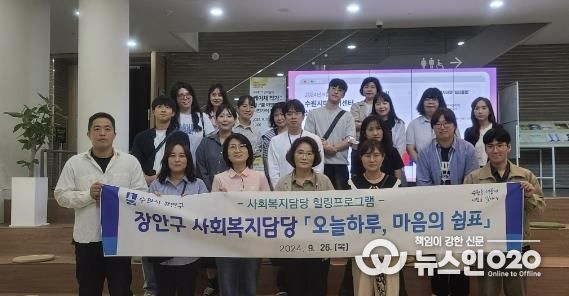 (뉴스인020 = 박용우 기자) 수원시 장안구는 지난 26일, 사회복지 업무 담당 공무원들을 위한 힐링 프로그램 ‘오늘하루, 마음의 쉼표’를 실시했다.