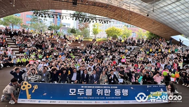 (뉴스인020 = 박용우 기자) 수원시장애인종합복지관이 27일 광교호수공원 마당극장에서 장애인과 비장애인이 함께하는 걷기대회 ‘모두를 위한 동행’을 열었다.