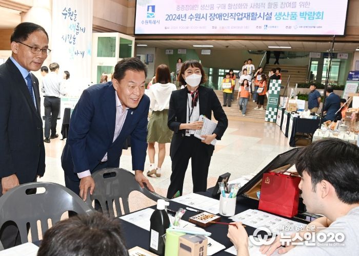 (뉴스인020 = 박용우 기자) 수원시가 9월 30일 수원시청 본관 로비에서 ‘2024 수원시장애인직업재활시설 생산품 박람회’를 열었다.
