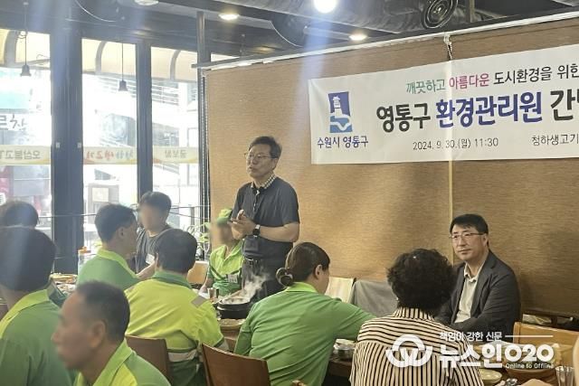 (뉴스인020 = 박용우 기자) 수원시 영통구는 지난 30일 깨끗하고 아름다운 도시환경을 위해 애쓰는 영통구 환경관리원들을 격려하기 위한 간담회를 개최했다.
