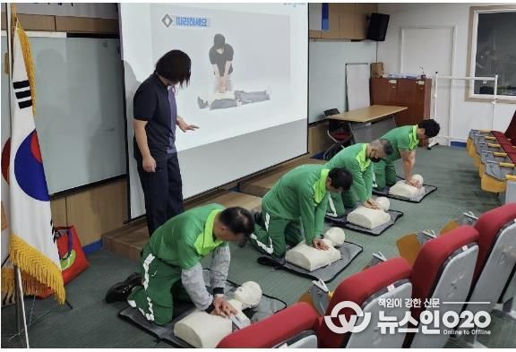(뉴스인020 = 박용우 기자) 수원시 팔달구 인계동은 지난 30일 행정복지센터 직원 및 환경관리원 등 30여 명 대상으로 '찾아가는 새빛안전지킴이 교육'을 진행하였다.