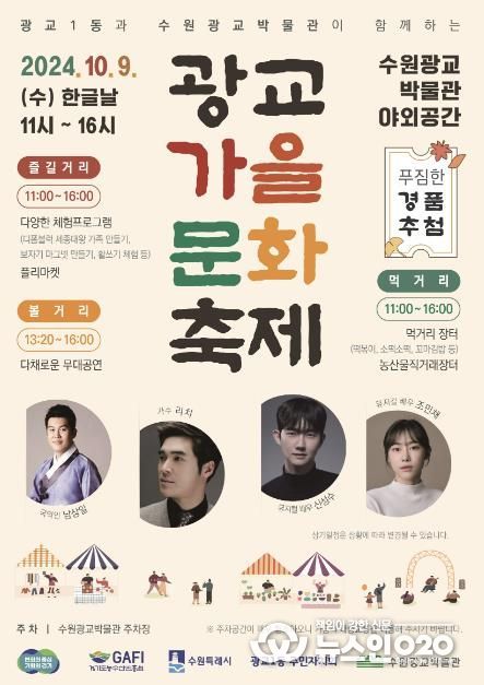 (뉴스인020 = 박용우 기자) 수원광교박물관이 광교1동 주민자치회와 협업해 9일 가족문화행사인 ‘광교 가을문화축제’를 연다.