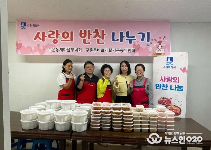 (뉴스인020 = 박용우 기자) 수원시 권선구 구운동 새마을부녀회는 지난 8일 관내 취약계층 등 26가구를 대상으로 반찬을 만들어 후원하는 '사랑의 반찬 나누기' 봉사활동을 진행했다.