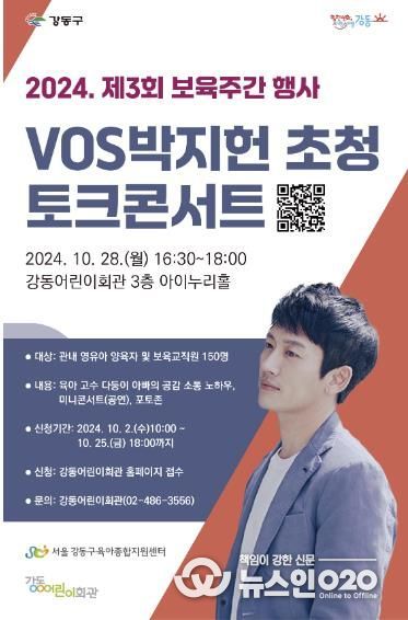 (뉴스인020 = 박용우 기자) 강동구는 오는 28일, 제3회 서울시 보육주간을 맞아 강동어린이회관에서 양육자와 보육 교직원이 함께 즐길 수 있는 ‘vos 박지헌 초청 토크콘서트’를 개최한다고 14일 밝혔다.