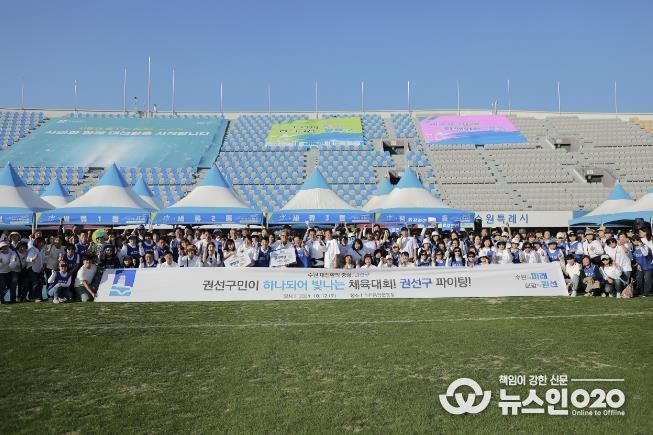 (뉴스인020 = 박용우 기자) 수원시 권선구는 지난 12일 제68회 수원특례시 한마음체육대회를 참가하여 명랑운동회 경기력상 1등, 화합상 2등을 수상했다.