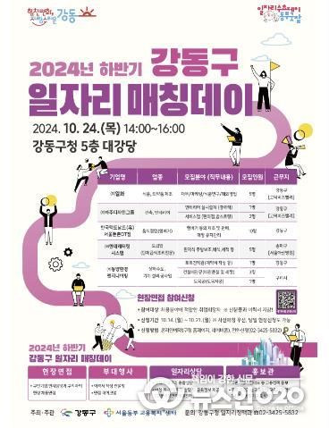 (뉴스인020 = 박용우 기자) 강동구는 오는 24일, 강동구청 5층 대강당에서 2024년 하반기 ‘일자리 매칭데이’ 를 개최한다고 15일 밝혔다.
